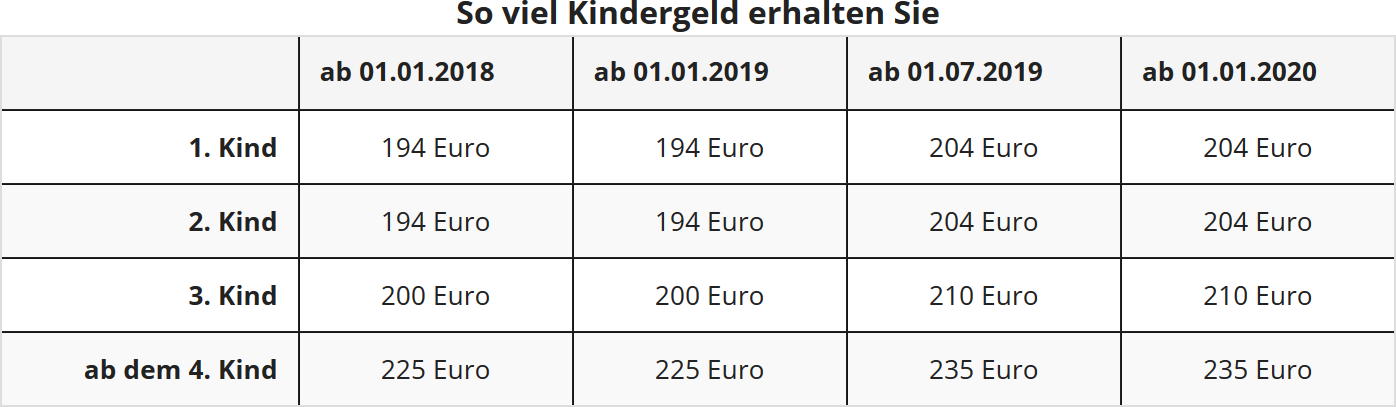 Wer mehrere Kinder hat, bekommt nicht für jedes Kind gleich viel Kindergeld. Der Anspruch auf Kindergeld beträgt: