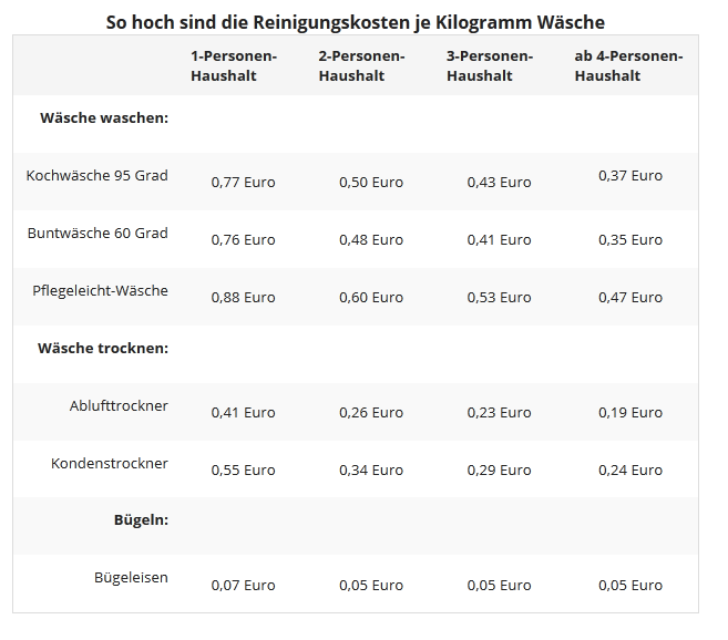 Wichtig: In der Durchschnittsrechnung wurden der Anschaffungspreis der Waschmaschine, eine Instandhaltungspauschale sowie Betriebskosten wie Strom, Wasser und Waschmittel berücksichtigt. Der Ansatz einer Jahrespauschale für Reinigungskosten ist laut BFH nicht zulässig.