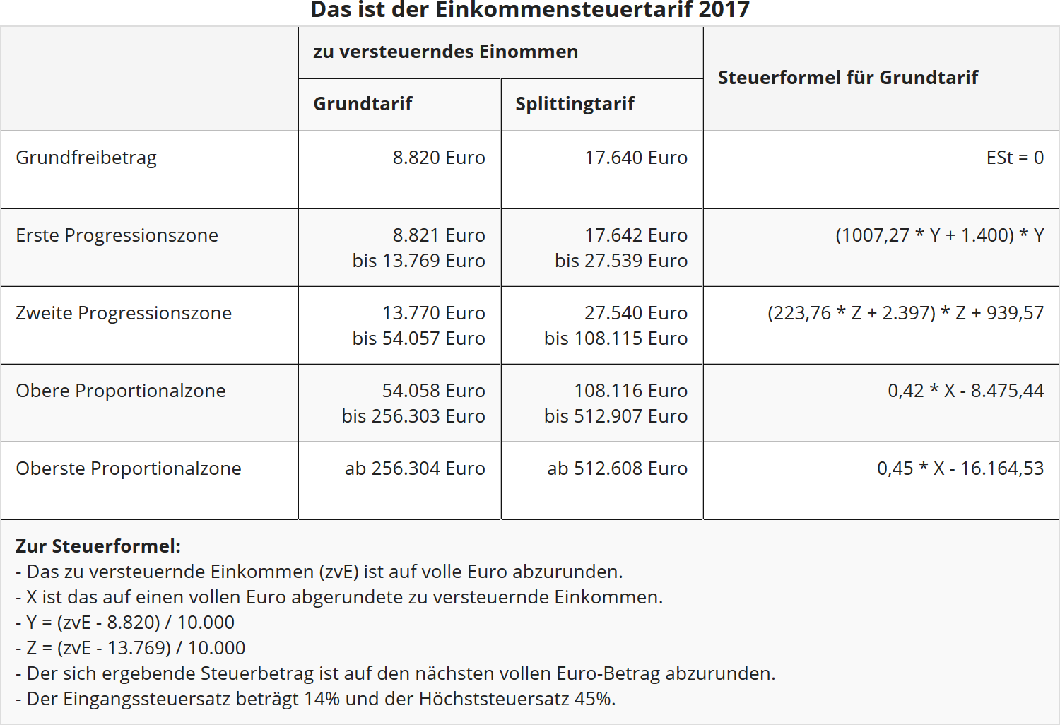 Im Jahre 2017 werden die Eckwerte des Steuertarifs um die geschätzte Inflationsrate erhöht, d.h. "nach rechts" verschoben werden. Für 2017 erfolgt eine Erhöhung um 0,73 %, und für 2018 sind es nochmals 1,65 %. Durch diese Anpassung greifen steigende Steuersätze des progressiven Steuertarifs erst bei etwas höherem Einkommen, es bleibt etwas mehr Netto vom Brutto.