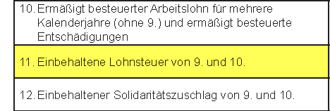 - Lohnsteuer zu Versorgungsbezügen / Arbeitslohn für mehrere Jahre (Zeile 11)