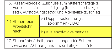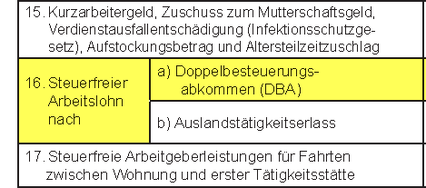 - Steuerfreier Lohn nach DBA oder ATE (Zeile 16)