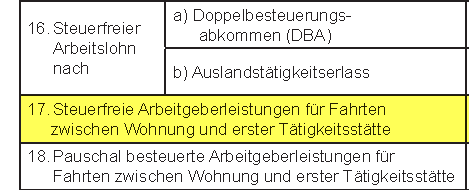 - Steuerfreie Erstattungen für Fahrtkosten (Zeile 17)