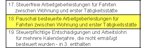 - Pauschalbesteuerte Erstattungen für Fahrtkosten (Zeile 18)