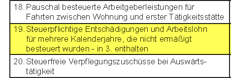 - Nicht ermäßigte Entschädigungen / Lohn für mehrere Kalenderjahre (Zeile 19)