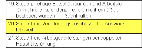 - Steuerfreie Verpflegungszuschüsse (Zeile 20)