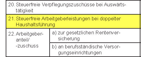 - Steuerfreie Erstattungen bei doppelter Haushaltsführung (Zeile 21)