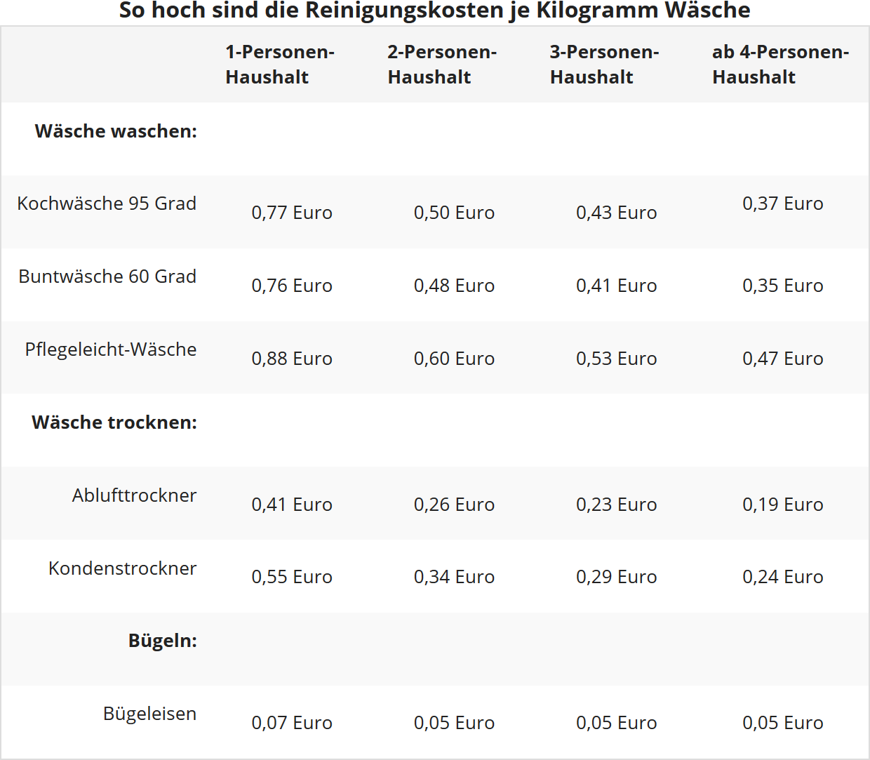 Wichtig: In der Durchschnittsrechnung wurden der Anschaffungspreis der Waschmaschine, eine Instandhaltungspauschale sowie Betriebskosten wie Strom, Wasser und Waschmittel berücksichtigt. Der Ansatz einer Jahrespauschale für Reinigungskosten ist laut BFH nicht zulässig.