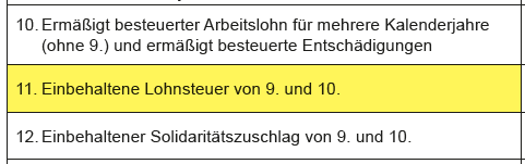 - Der steuerpflichtige Teil der außerordentlichen Einkünfte (Abfindung, Jubiläumszuwendung, Vergütung für mehrjährige Tätigkeit usw.) wird aus dem zu versteuernden Einkommen herausgerechnet.