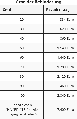 Laut Paragraf 33 b Abs. 3 EStG werden folgende Pauschbeträge gewährt: