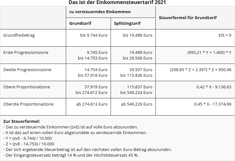 Der steuerliche Grundfreibetrag stellt sicher, dass der Anteil des Einkommens, der für den Lebensunterhalt absolut notwendig ist, nicht mit Steuern belastet wird (Existenzminimum). Zum 1.1.2021 wurde der Grundfreibetrag von 9.408 Euro auf 9.744 angehoben. Für Verheiratete gilt der doppelte Betrag (§ 32a EStG). Zum 1.1.2022 erfolgt eine weitere Anhebung auf 9.984 Euro 10.347 Euro (§ 32a EStG).